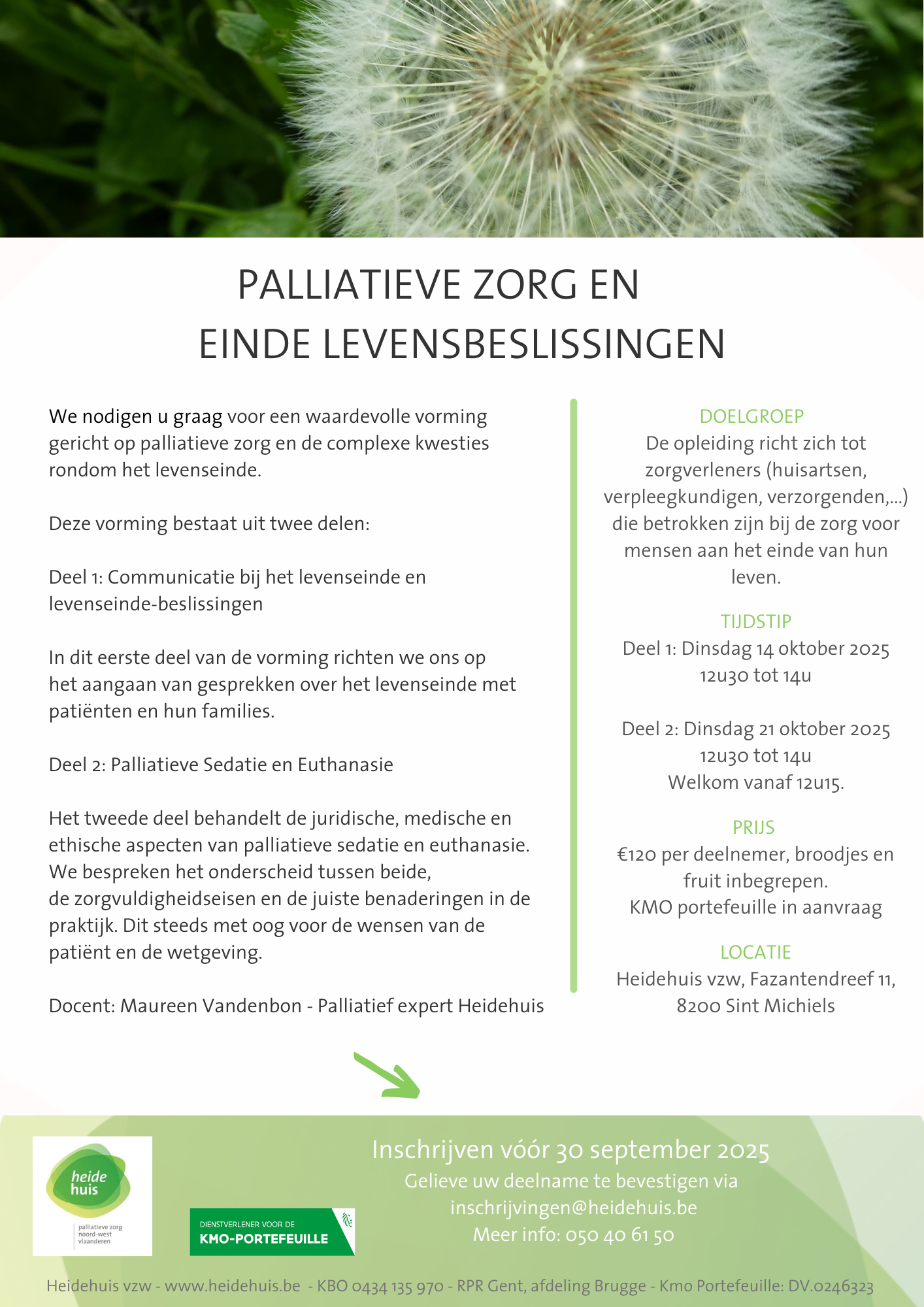 Docent: Maureen Vandenbon - Palliatief expert Heidehuis